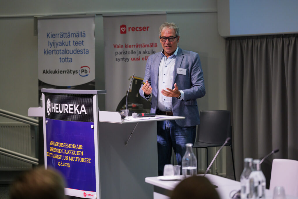 Eucobat, kansallisia paristojen ja akkujen keräysjärjestelmiä edustava eurooppalainen yhdistys Brysselissä, toimii tuottajien edunvalvojana EU-tasolla. Pääsihteeri Eric Ruyters esitteli ajankohtaisia edunvalvontateemoja Vantaan Heurekassa pidetyssä Akkuasetusseminaarissa elokuussa 2025.