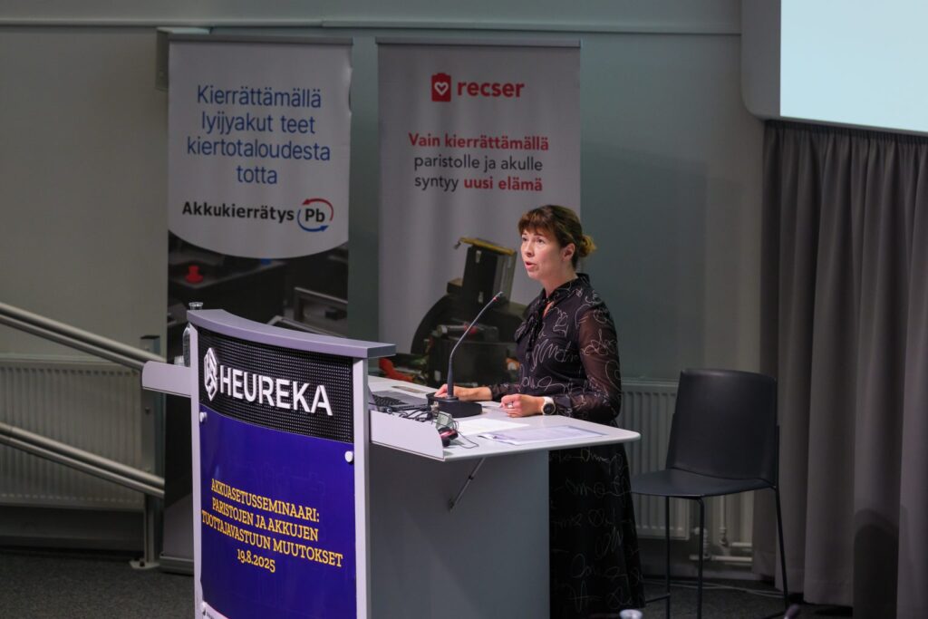 The EU Battery Regulation significantly reforms producer responsibility systems for batteries. At the Battery Regulation Seminar held in August 2025 at Heureka Science Center in Vantaa, participants learned about the regulation’s impacts on the operations of producer organisations: distributors’ obligation to take back batteries as well as stricter efficiency and recovery requirements will change future collection and recycling. Recser Oy is building an entirely new collection system for large industrial batteries in cooperation with Akkukierrätys Pb Oy. Meanwhile, Suomen Autokierrätys Oy is preparing both for these changes and for the growing number of electric vehicles.
