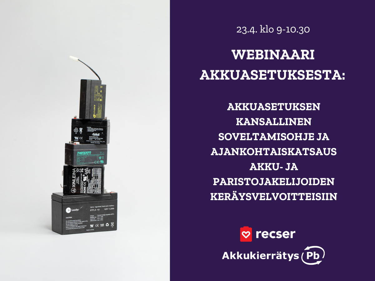 VII Akkuasetuswebinaari: Akkuasetuksen kansallinen soveltamisohje ja ajankohtaiskatsaus akku- ja paristojakelijoiden keräysvelvoitteisiin